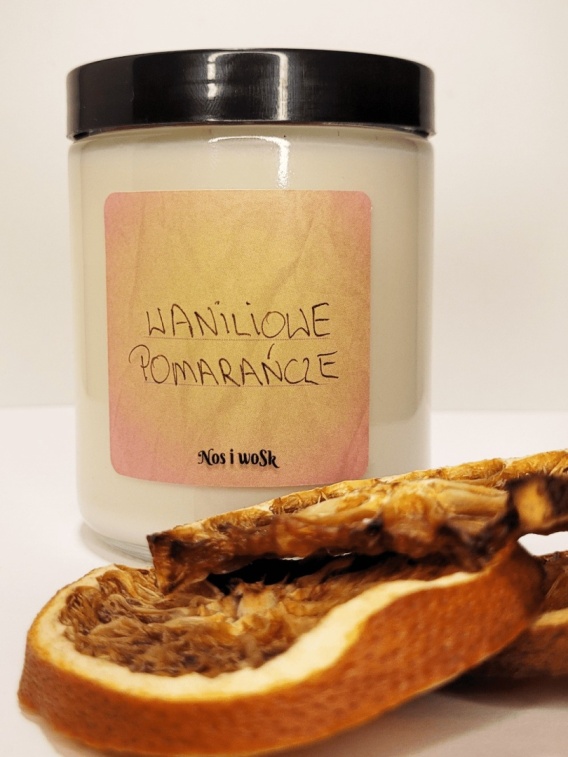 Waniliowe pomarańcze to ręcznie robiona zapachowa świeca sojowa z dodatkiem bardzo przyjemnej dla zmysłów mieszanki aromatów wanilii oraz pomarańczy. Każda świeca sojowa została wykonana ręcznie – od roztopienia wosku i stworzenia mieszanki do opisu na etykiecie.